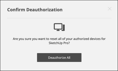 Clicking Deauthorize All logs you out of SketchUp on each of your devices and you'll get a confirmation message letting you know your changes have been completed.