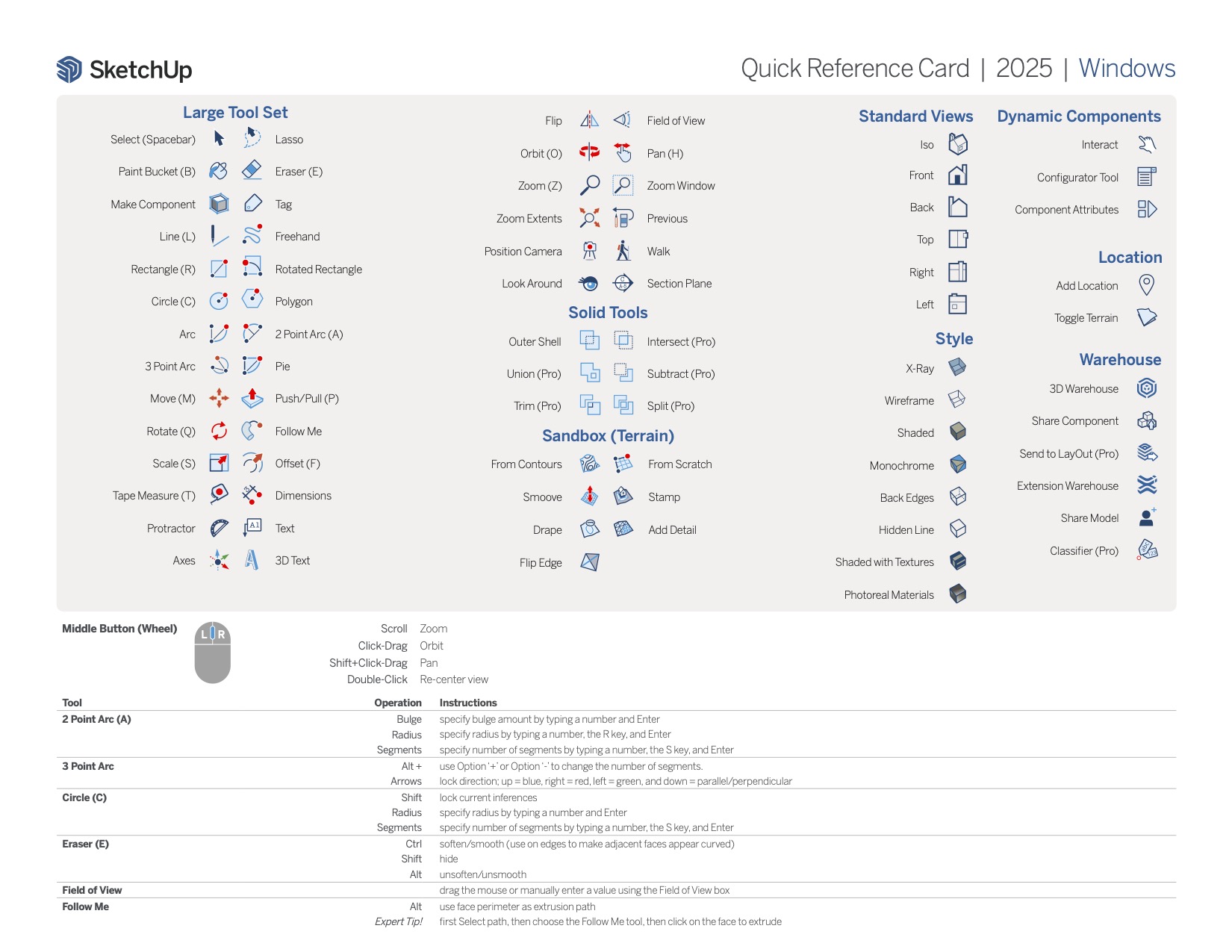 Sketchup Pro 2025 Quick Reference - Windows Written by Geoff Powell on Feb 25, 2025. Posted in SketchUp Pro & Studio A quick reference card showing you where to find every command in Sketchup Pro 2025 for Windows